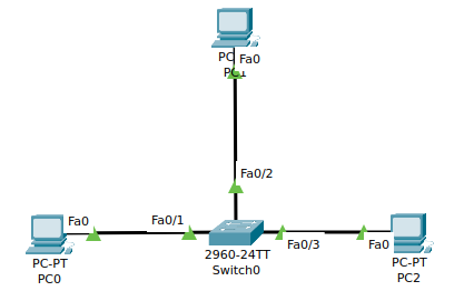 Vlan(Virtual local area network)이란 물리적 배치와 상관없이 논리적인 LAN을 구성하여 프레임을 전달한다. 아래와 같이 기본적으로 스위치에 연결된 컴퓨터는 같은 vlan을 가짐으로 통신이 가능하다.