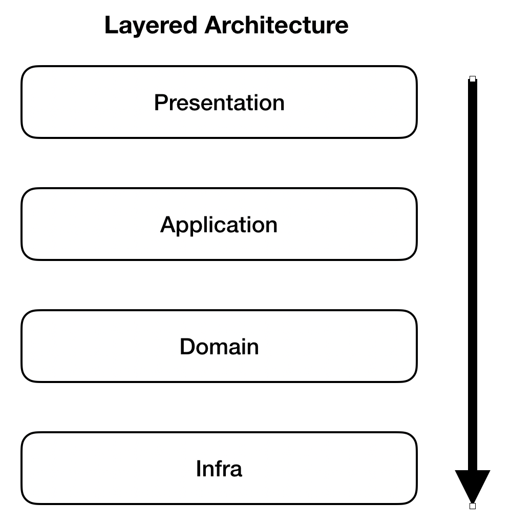 위의 설명과 같이 구성된 아키턱쳐의 중요한 점은 상위 계층에서 하위 계층으로의 의존만 존재하고 하위 계층은 상위 계층을 의존하지 않는다. 하지만 이렇게 되면 상위 계층이 상세한 구현 기술을 다루는 인프라스트럭처 계층에 종속된다는 점이다. 때문에 DIP라는 개념이 도입된다.