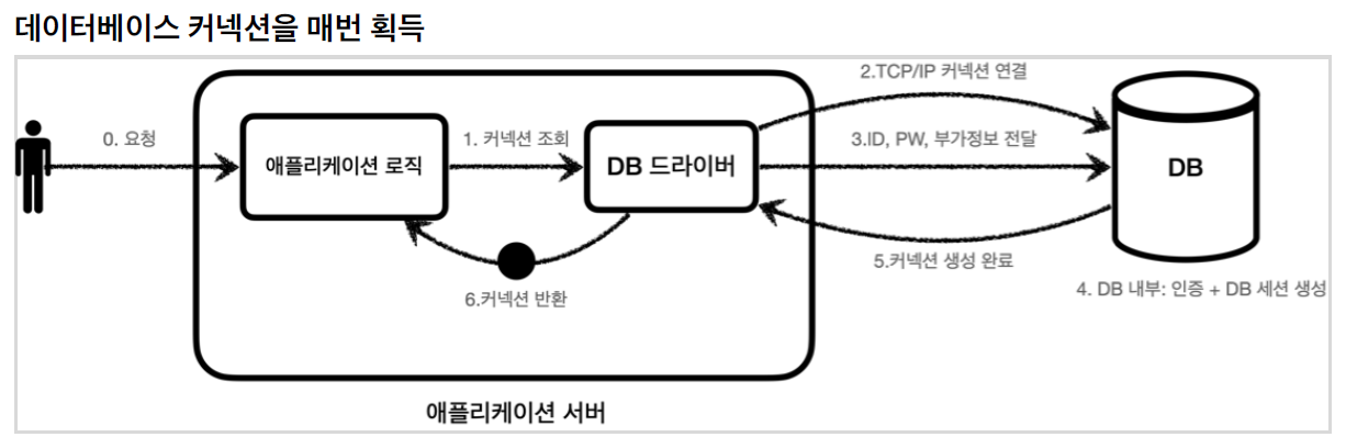 - 네트워크 연결 비용 감소: 네트워크를 통해 DB에 접속하게 된다. 이 네트워크는 TCP/IP 기반으로 동작하기 때문에 네트워크가 연결을 수립하기 전에 3-way handshake를 맺어야 한다. 이 과정은 추가적인 비용이 발생하며, 사용자 입장에서는 지연 시간이 생기기 때문에 애플리케이션의 사용 경험에 부정적인 영향을 미친다.