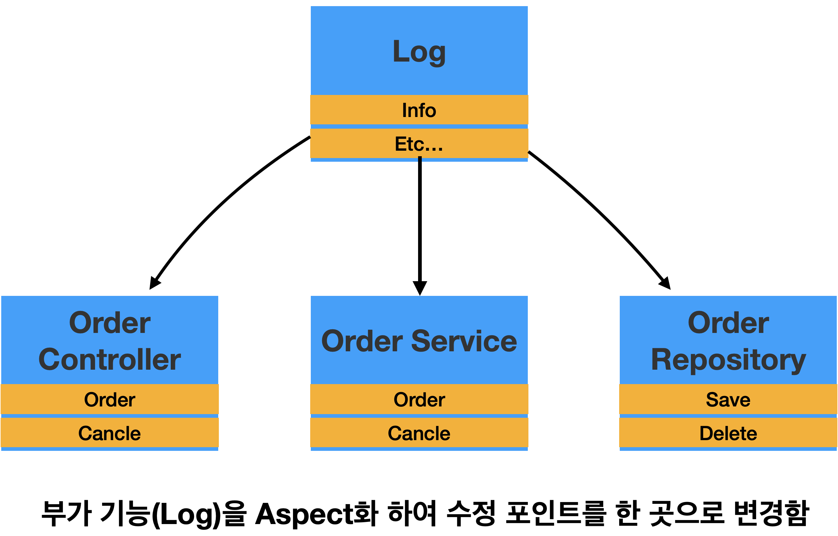 - 가독성 저하: 핵심 기능과 부가 기능이 섞여 있어 코드의 가독성이 떨어집니다.
