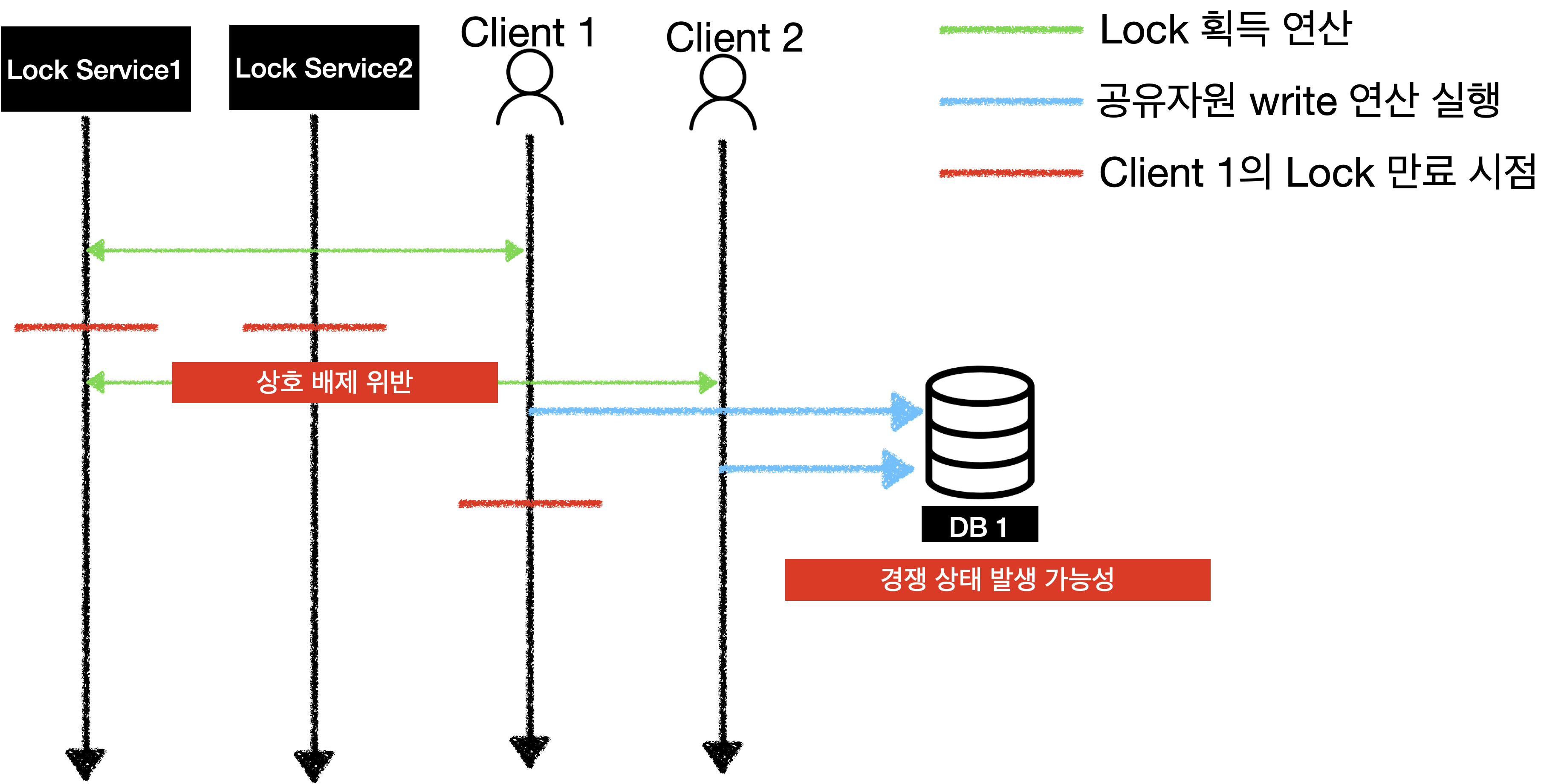 이 시분할 문제가 발생하게 되면 만료된 시점이 서로 다르게 해석됨으로 상호 배제 속성을 위반할 수 있게 되고, 두 개 이상의 클라이언트가 동일한 리소스에 접근하는 상황을 초래할 수있습니다.