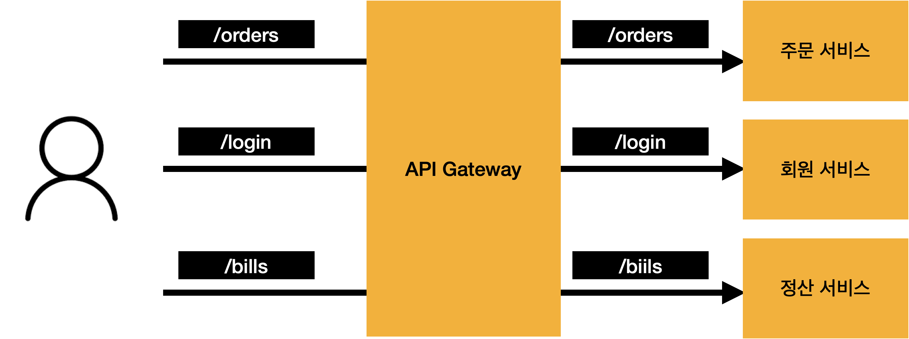 보통 API Gateway는 아래의 그림처럼 단순히 인증 및 인가를 처리하고, 클라이언트의 요청을 적절한 서비스로 라우팅해주는 역할을 한다고 생각하기 쉽습니다. 하지만 API Gateway의 역할은 단순한 라우팅 이상입니다.