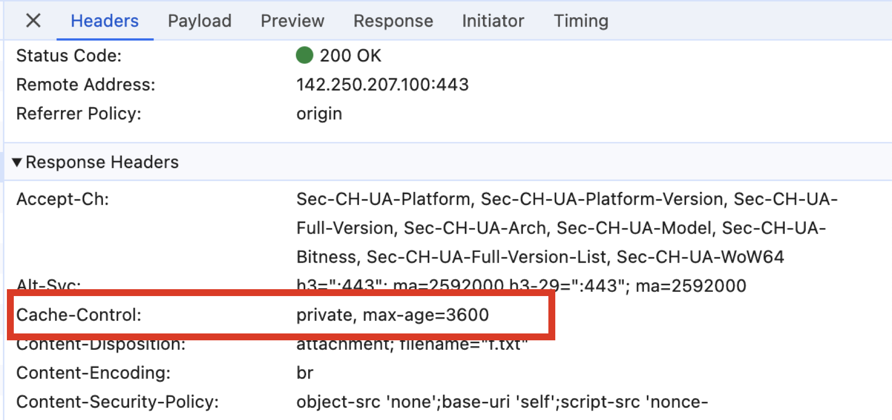 private 속성의 의미는 가장 끝의 사용자 브라우저만 캐시를 저장할 수 있음을 나타내고, max-age의 경우 이 3600초 동안에는 동일한 요청에 대해 서버로부터 다시 데이터를 가져오는 대신, 로컬 캐시에서 데이터를 사용할 수 있음을 나타냅니다.