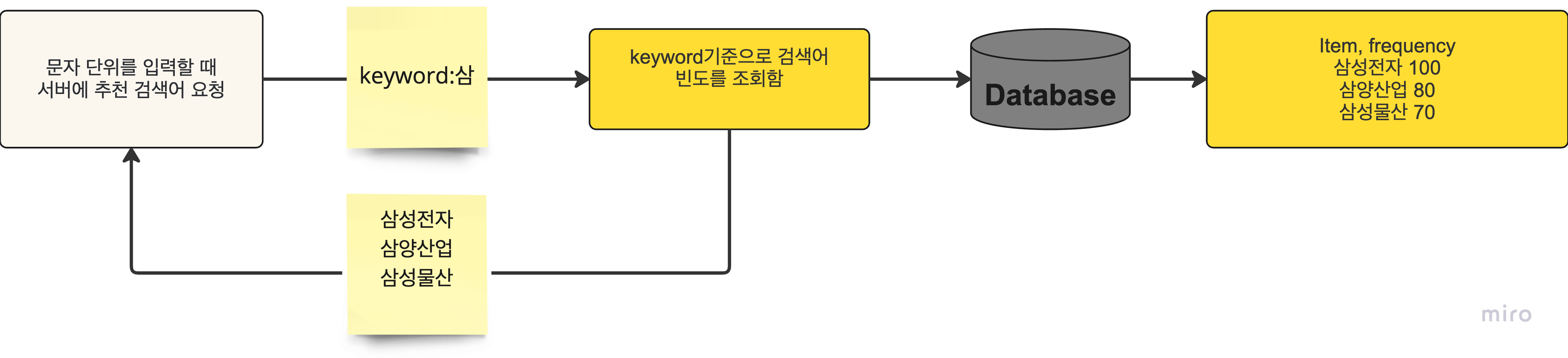 예를 들어, 데이터베이스에 다음과 같은 5개의 키워드가 있다고 가정해 봅시다. 사용자가 "삼"이라는 단어를 검색 중이라면, 서버는 "삼성전자", "삼양식품", "삼지전자"를 반환해야 합니다.
