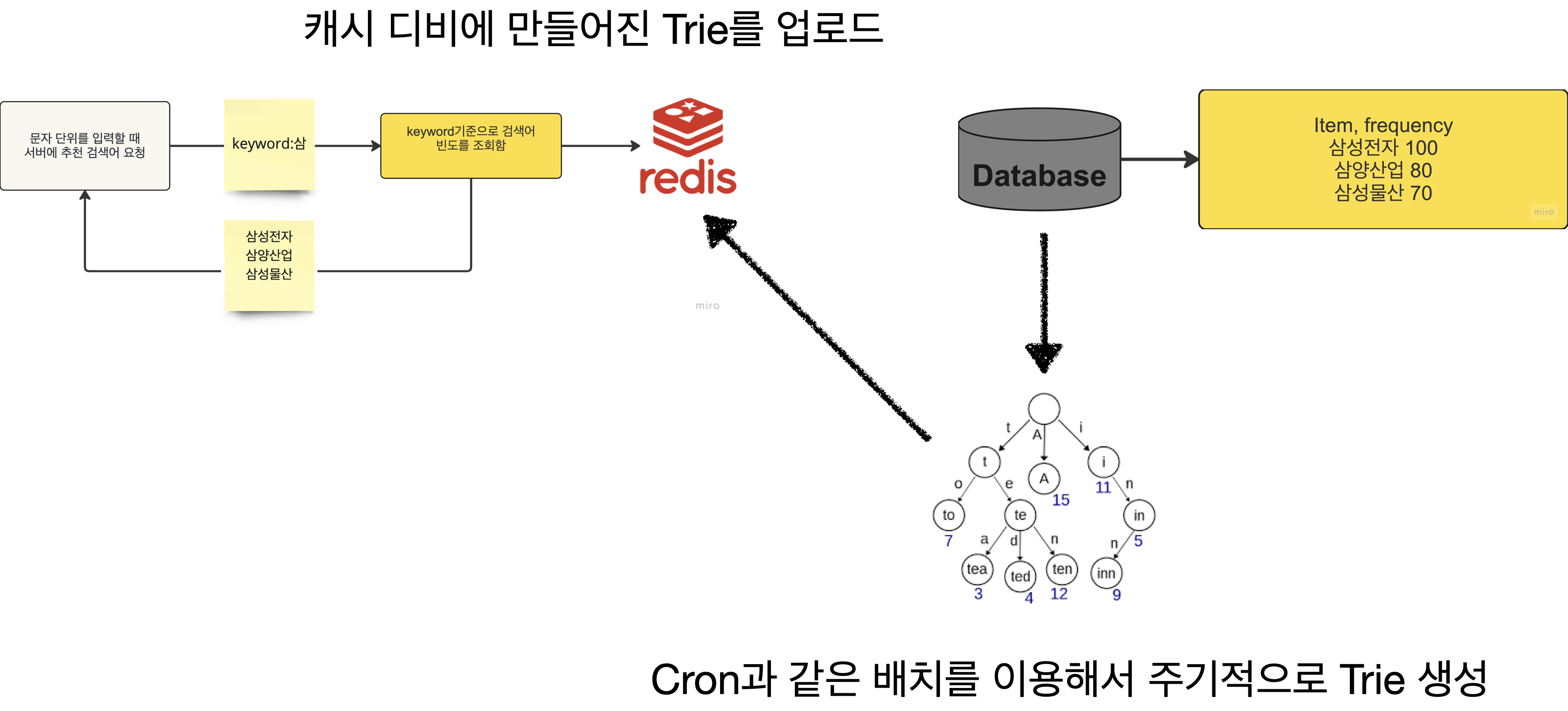 또한 이 서비스가 실시간 급상승 검색어 순위와 같은 민감한 데이터가 아니고, 대용량의 데이터 처리이기 때문에 사용자가 적은 시간에 배치 작업을 통해 트라이를 생성하는 것이 시스템 적으로나, 서비스적으로나 좋다고 생각합니다.