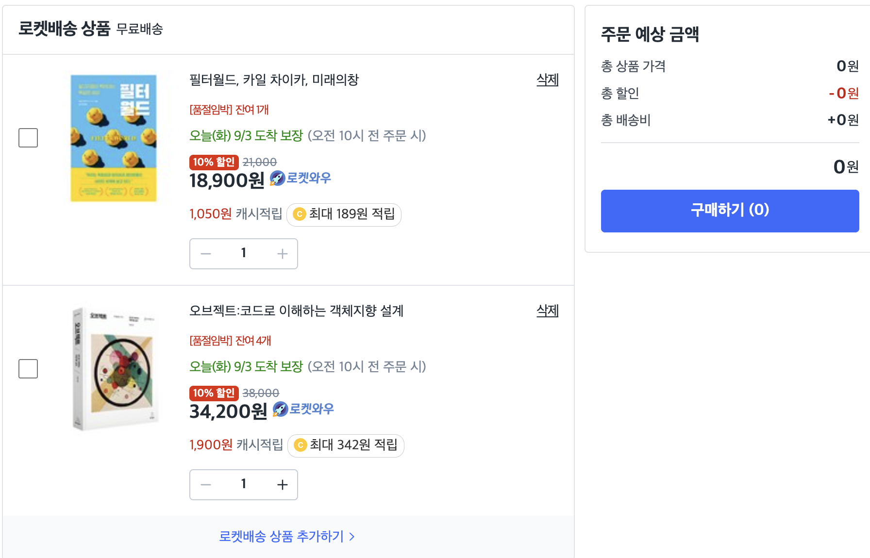 아래의 그림에서 "필터월드", "오브젝트" 책을 각각 구매하게 되면 다른 Checkout ID가 부여됩니다.
