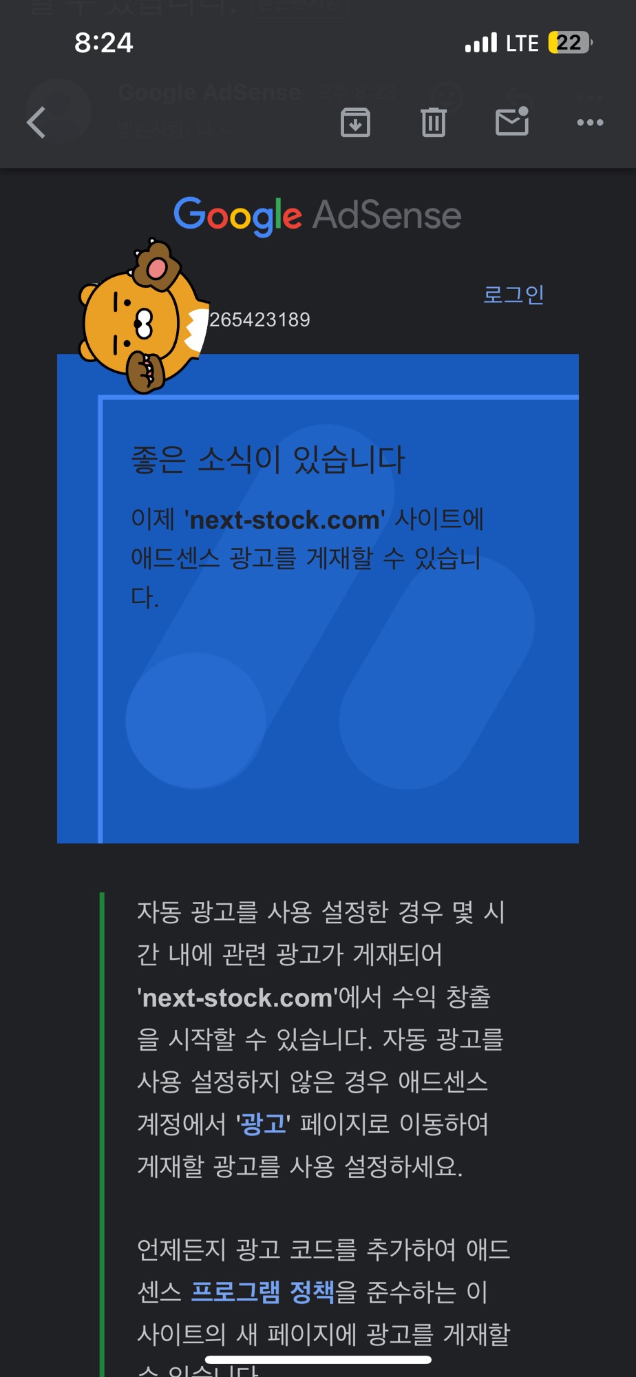 최종적으로 위의 수행과정을 통해서 일정 트레픽과 자사의 콘텐츠를 확보할 수 있었고, 최종적으로 adsense 승인을 얻어냈다.!! 다음의 목표는 월 10만원을 버는 것을 목표로 두겠다.