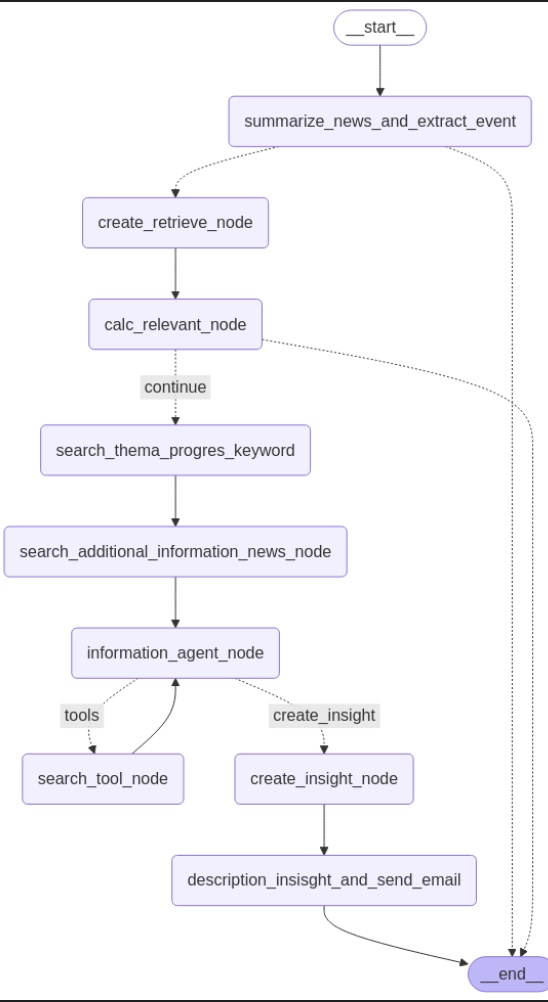 저희가 만들고자 했던 시스템은 하루에도 수백, 수천 개씩 쏟아지는 뉴스 중에서 중요한 정보(인사이트)를 자동으로 발견하고 요약해주는 역할을 합니다. 사람이 모든 뉴스를 직접 읽고 평가할 수는 없으니까, 이를 돕는 AI 시스템을 설계하기로 했습니다.