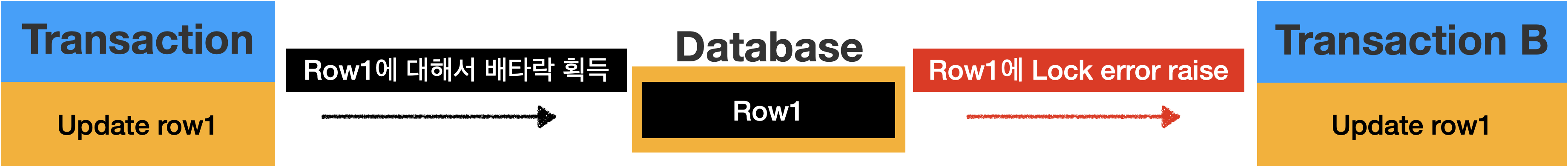 - 트랜잭션 A가 완료되지 않은 상태에서 트랜잭션 B가 같은 행(ROW1)에 대한 업데이트를 시도하면서 락 충돌(Lock conflict)이 발생하여 오류가 발생했다.