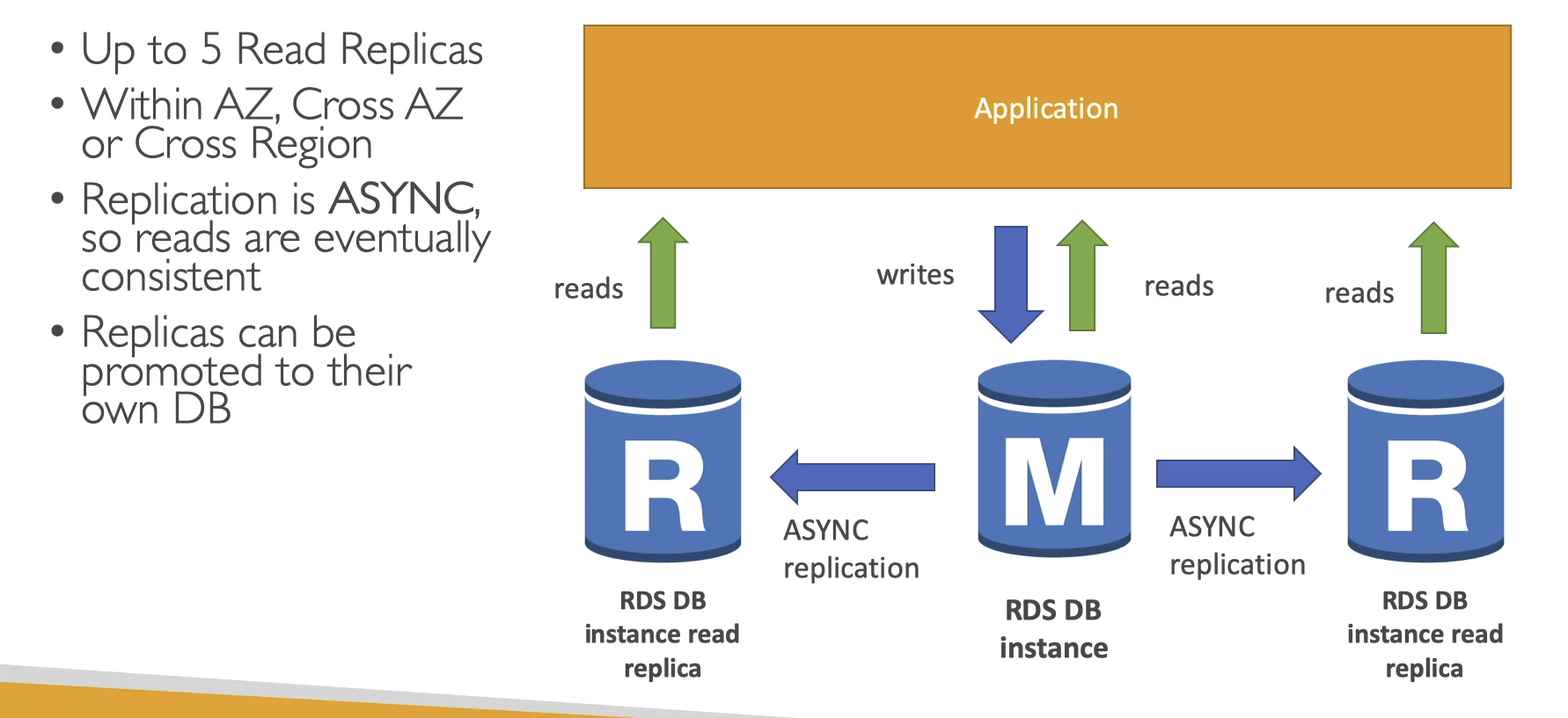 - 읽기 전용 복제는 프라이머리 인스턴스에 대한 읽기 전용 복제본을 생성하여 가용성을 높이지는 않습니다.