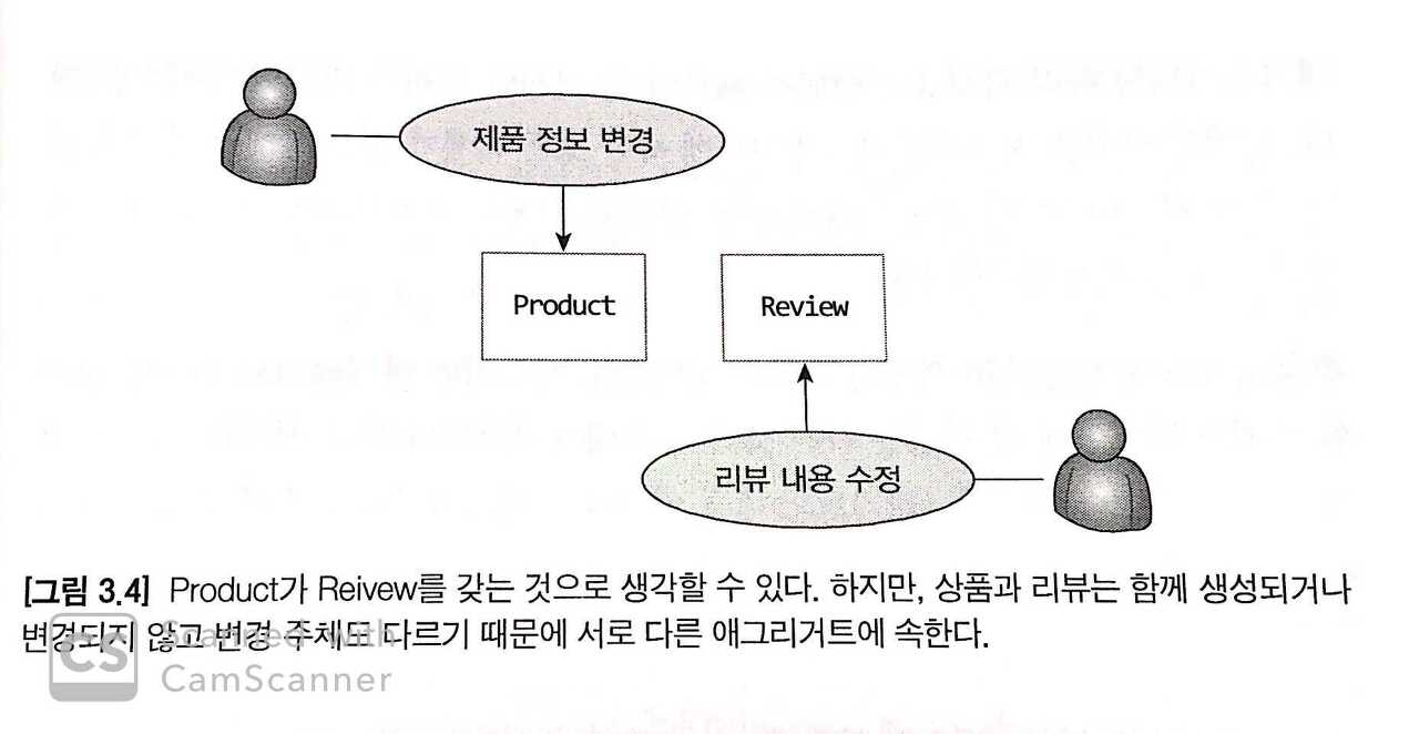 하지만 주의할 점이 있습니다. 특정 요구사항에 따라 A가 B를 가져야 한다면 이를 하나의 애그리거트로 구성할 수 있지만, 반드시 그렇지 않을 수도 있습니다. 예를 들어, 상품과 리뷰가 있는데, 모든 상품에 리뷰가 반드시 존재할 필요는 없으며, 상품 정보의 변경이 리뷰를 수정하는 것을 의미하지 않을 수 있습니다.