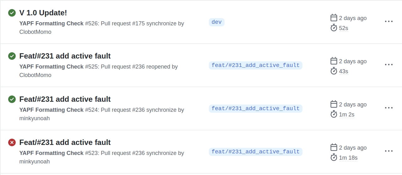 workflow가 실행되면 자동으로 생성되는 이름이다. 보통은 Push로 실행된 액션은 커밋 메시지가 이름이 되고 Pull Request로 실행된 액션은 Pull Request의 제목이 이름이 된다.